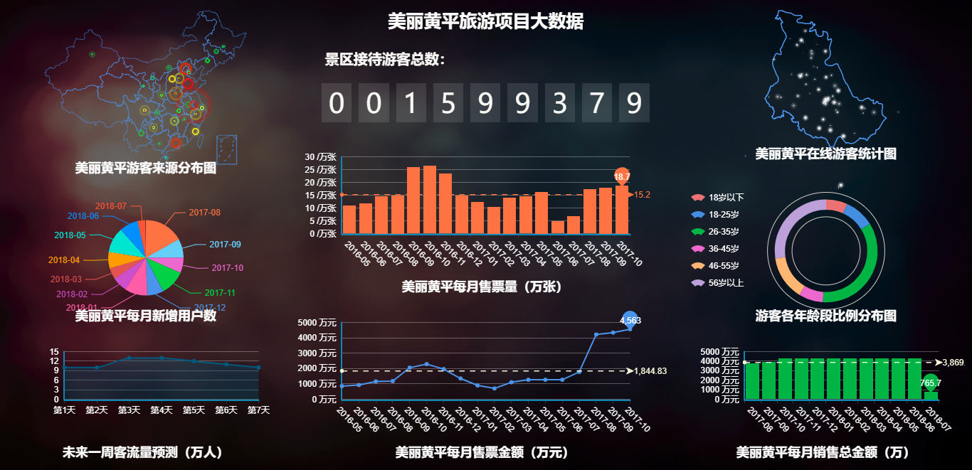 路通視信始終立足于景區(qū)的整體設(shè)計與規(guī)劃,追求“智慧化”,不盲目推崇科技感,堅持以項目的落地可行為建設(shè)目標(biāo)。曾與貴州省黃平縣展開合作,立足當(dāng)?shù)貙嵺`,為其量身打造大數(shù)據(jù)平臺,涵蓋行、食、住、游、娛、購六大方面,滿足了相關(guān)政府部門推動旅游產(chǎn)業(yè)和旅游信息化的行政辦公需求。