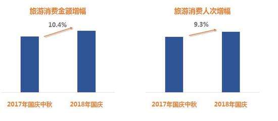 相較于2017年的國慶中秋超級黃金周,旅游消費金額同比增長10.4%,旅游消費人次同比增長9.3%。居民出游消費熱情持續高漲。